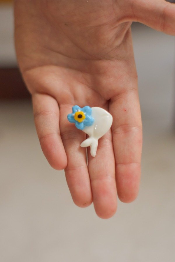 Este prendedor es parte de una colección que se llama "No me olvides", un porcentaje de cada venta de es destinado a Abuelas de Plaza de Mayo.